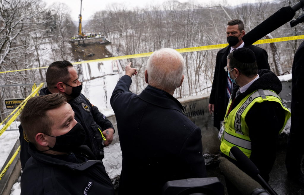 While at the bridge, Biden spoke with Pittsburgh Mayor Ed Gainey and first responders, and was joined by Sen. Bob Casey, Rep. Conor Lamb and Pennsylvania Lt. Gov. John Fetterman.